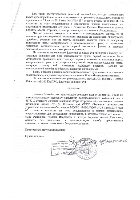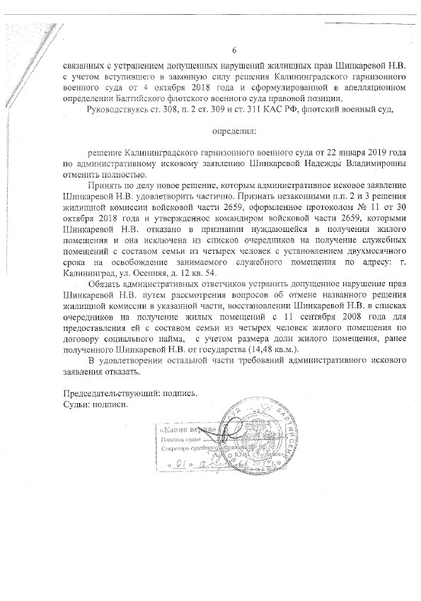 Результат нашей работы: Суд отменил решение и обязал включить дочь в реестр нуждающихся